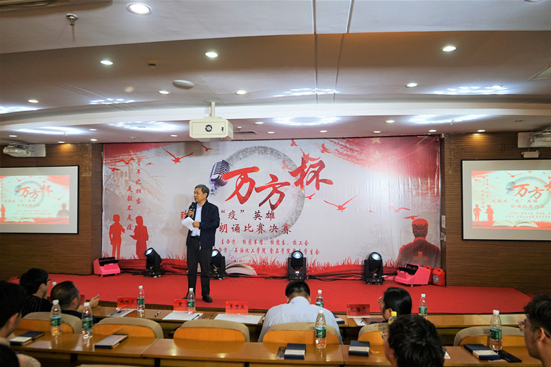 為了進(jìn)一步引導(dǎo)常大學(xué)子學(xué)習(xí)抗疫先進(jìn)人物事跡,展示中國特色社會(huì)主義制度優(yōu)勢(shì),引導(dǎo)學(xué)生更加堅(jiān)定中國共產(chǎn)黨的領(lǐng)導(dǎo),更加熱愛祖國、熱愛中國共產(chǎn)黨,向戰(zhàn)“疫”英雄致敬。11月18日下午1點(diǎn)30分,由校圖書館、校團(tuán)委、校工會(huì)主辦,石油化工學(xué)院食品學(xué)院承辦的常州大學(xué)讀書月“萬方杯”朗誦大賽——致敬戰(zhàn)“疫”英雄決賽在圖書館報(bào)告廳舉行。本次大賽的評(píng)委有:校關(guān)工委副主任袁能、工會(huì)主席李秀英、直屬單位黨委書記、圖書館副館長(zhǎng)姚致遠(yuǎn)、西太湖校區(qū)主任蔣偉中、材料科學(xué)與工程學(xué)院黨委書記呂琳華、校宣傳部副部長(zhǎng)包海霞和校團(tuán)委副書記顧現(xiàn)朋。