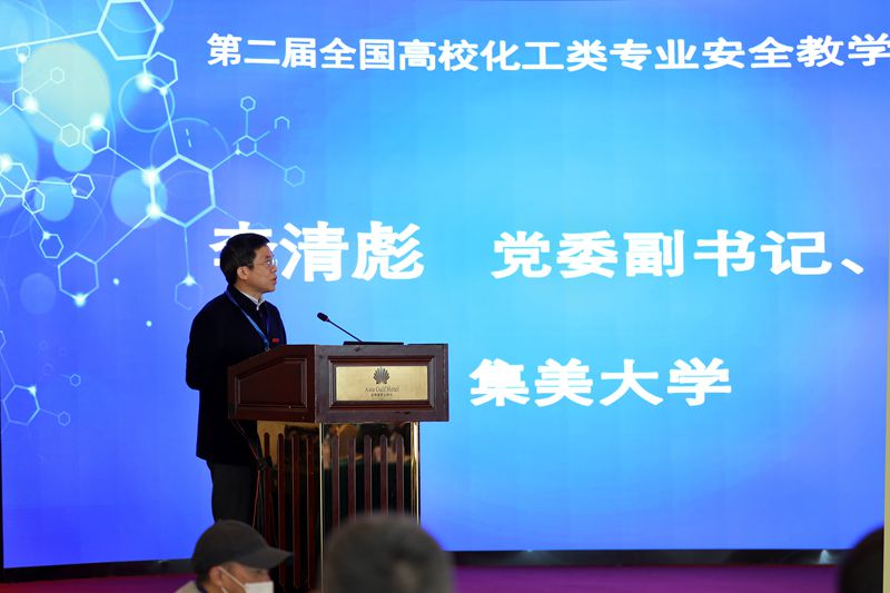 集美大學(xué)黨委副書記、校長李清彪、教育部高等學(xué)?;ゎ悓I(yè)教學(xué)指導(dǎo)委員會、天津大學(xué)夏淑倩、中國石化集團安監(jiān)局副局長王玉臺等分別致辭。常州大學(xué)黨委書記陳群代表中國化工安全教育聯(lián)盟對與會嘉賓表示誠摯歡迎并強調(diào)要把安全融入化工專業(yè)教育的全方位、全過程,打造高質(zhì)量、高標(biāo)準(zhǔn)、高水平的化工安全教育,堅持開放融合,深化互動交流。