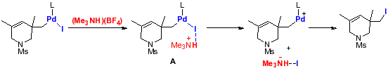 研究發(fā)現(xiàn),便宜易得的三乙胺四氟硼酸鹽(Et3NH)(BF4)作為氫鍵給體,可以和C(sp3)-PdII-I形成氫鍵加和物A。氫鍵的形成削弱了PdII-I鍵,有效促進碘負離配體的配位解離,使得還原消除的反應(yīng)能壘大大降低,最終在保持高效率的同時可以使反應(yīng)溫度降至60度。