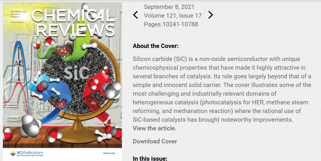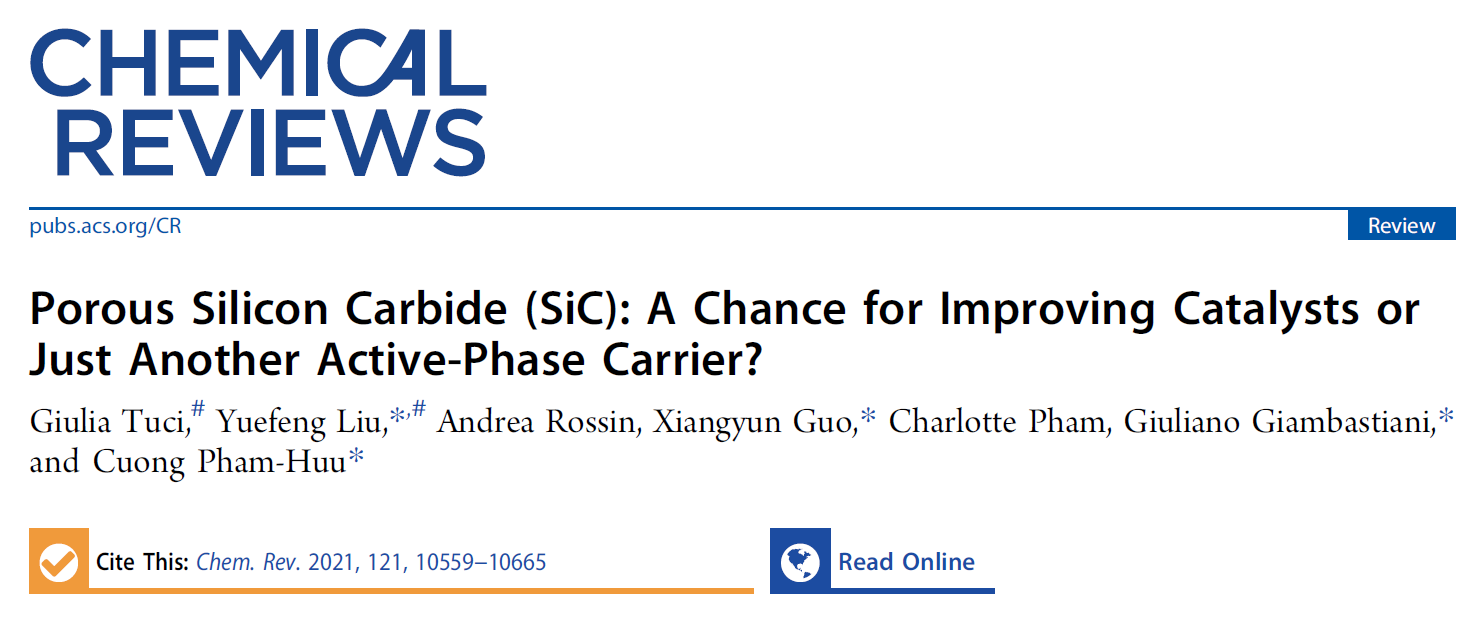近日,郭向云教授應(yīng)邀與意大利國(guó)家研究委員會(huì)、中科院大連化學(xué)物理研究所、SICAT公司、法國(guó)國(guó)家科研中心等研究人員合作撰寫(xiě)的關(guān)于高比表面積碳化硅催化應(yīng)用的綜述文章“Porous Silicon Carbide (SiC): A Chance for Improving Catalysts or Just Another Active-Phase Carrier?”在化學(xué)領(lǐng)域國(guó)際頂級(jí)綜述類雜志Chemical Reviews上作為封面文章發(fā)表。該論文系統(tǒng)地介紹了碳化硅作為催化劑載體在催化領(lǐng)域中的應(yīng)用情況:(1)精細(xì)化學(xué)品合成,如烷烴氧化制烯烴和含氧化合物、不飽和鍵加氫、C-X鍵形成等;(2)燃料制備,如各種液體燃料、天然氣和氫氣;(3)環(huán)境保護(hù)和修復(fù),如水和空氣中有機(jī)污染物的氧化脫除及分解;(4)燃料電池催化劑,如甲醇和乙醇的電氧化、氧氣還原等;(5)光催化過(guò)程,如光解水產(chǎn)氫、精細(xì)化學(xué)品光催化合成、有機(jī)污染物降解等;(6)碳化硅復(fù)合物無(wú)金屬催化劑等。并就碳化硅催化劑研究中應(yīng)該關(guān)注的重點(diǎn),以及未來(lái)發(fā)展趨勢(shì)作了展望。