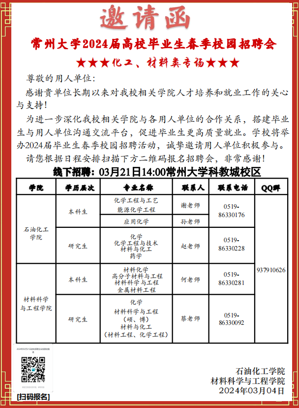 常州大學(xué)2024屆高校畢業(yè)生春季校園招聘會(huì)