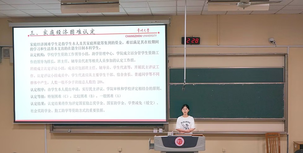 會議第二項議程,由輔導(dǎo)員何瑞玉為同學(xué)們進行資助政策解讀。何老師圍繞學(xué)生資助體系,詳細(xì)介紹了國家助學(xué)貸款、國家助學(xué)金、國家勵志獎學(xué)金、社會助學(xué)金以及學(xué)校各類專項資助項目的申請條件、流程和注意事項。她的講解細(xì)致全面,旨在幫助同學(xué)們清晰了解政策,徹底解除后顧之憂,決不讓經(jīng)濟問題成為求學(xué)路上的絆腳石,鼓勵大家放下包袱,專心學(xué)業(yè)。