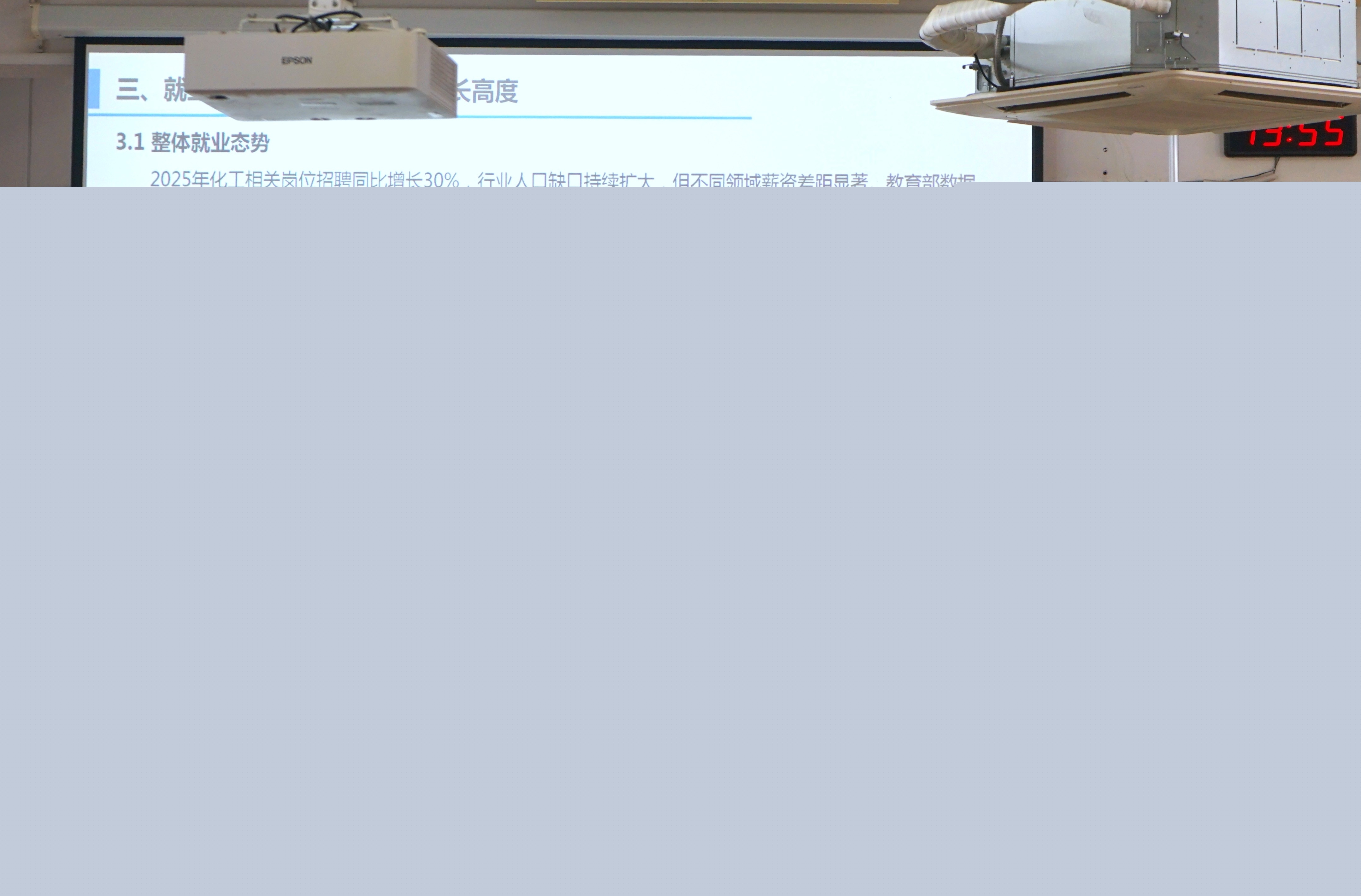 本次講座圍繞石化企業(yè)的招聘要求、行業(yè)發(fā)展現(xiàn)狀、職業(yè)發(fā)展建議等方面展開。三位校友首先為同學(xué)們解析了當前石化行業(yè)的招聘趨勢、招聘流程和具體要求,并結(jié)合他們所在企業(yè)和相關(guān)領(lǐng)域的詳實產(chǎn)業(yè)數(shù)據(jù),深入剖析了化工相關(guān)產(chǎn)業(yè)的發(fā)展現(xiàn)狀。此外,校友們結(jié)合他們的求學(xué)和工作經(jīng)歷,給學(xué)弟學(xué)妹們分析了化工相關(guān)專業(yè)的就業(yè)現(xiàn)狀和職業(yè)發(fā)展前景,幫助同學(xué)們厘清發(fā)展路徑、做好職業(yè)規(guī)劃。最后,他們寄語學(xué)弟學(xué)妹們要筑牢專業(yè)知識基礎(chǔ),務(wù)必學(xué)好專業(yè)課程;要拓展視野,鼓勵大家積極參與科研項目、學(xué)科競賽和社會實踐,提升解決復(fù)雜問題的綜合能力;還要錘煉品格,培養(yǎng)吃苦耐勞、勇于擔當?shù)穆殬I(yè)精神,并保持終身學(xué)習的習慣,以應(yīng)對行業(yè)的快速變革。他們的寄語情真意切,引發(fā)了在場同學(xué)的深深共鳴。