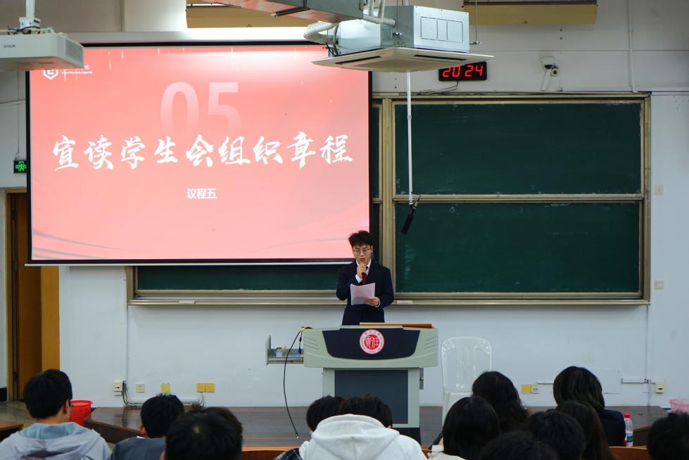 大會在全體參會成員齊唱國歌的莊嚴氛圍中拉開序幕。首先,學(xué)生會執(zhí)行主席做工組報告,全面回顧了院學(xué)生會在校園文化建設(shè)、學(xué)生權(quán)益維護活動等方面取得的顯著成績,并對今后工作進行簡要規(guī)劃。緊接著,大會進行了學(xué)生代表大會和研究生代表大會的代表選舉,通過無記名差額投票產(chǎn)生本科生代表21名、研究生代表9名。最后,大會宣讀了院學(xué)生會組織章程和院研究生會組織章程,并征求廣大同學(xué)對學(xué)院工作的意見和建議。