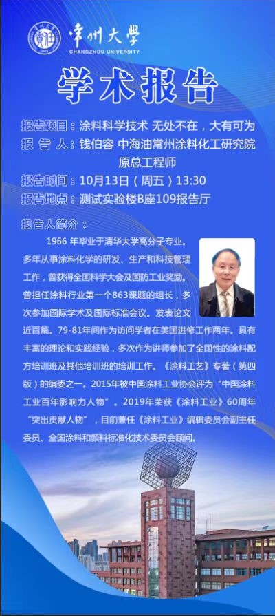 【學(xué)術(shù)報告】10月13日學(xué)術(shù)報告——涂料科學(xué)技術(shù) 無處不在 大有可為 |