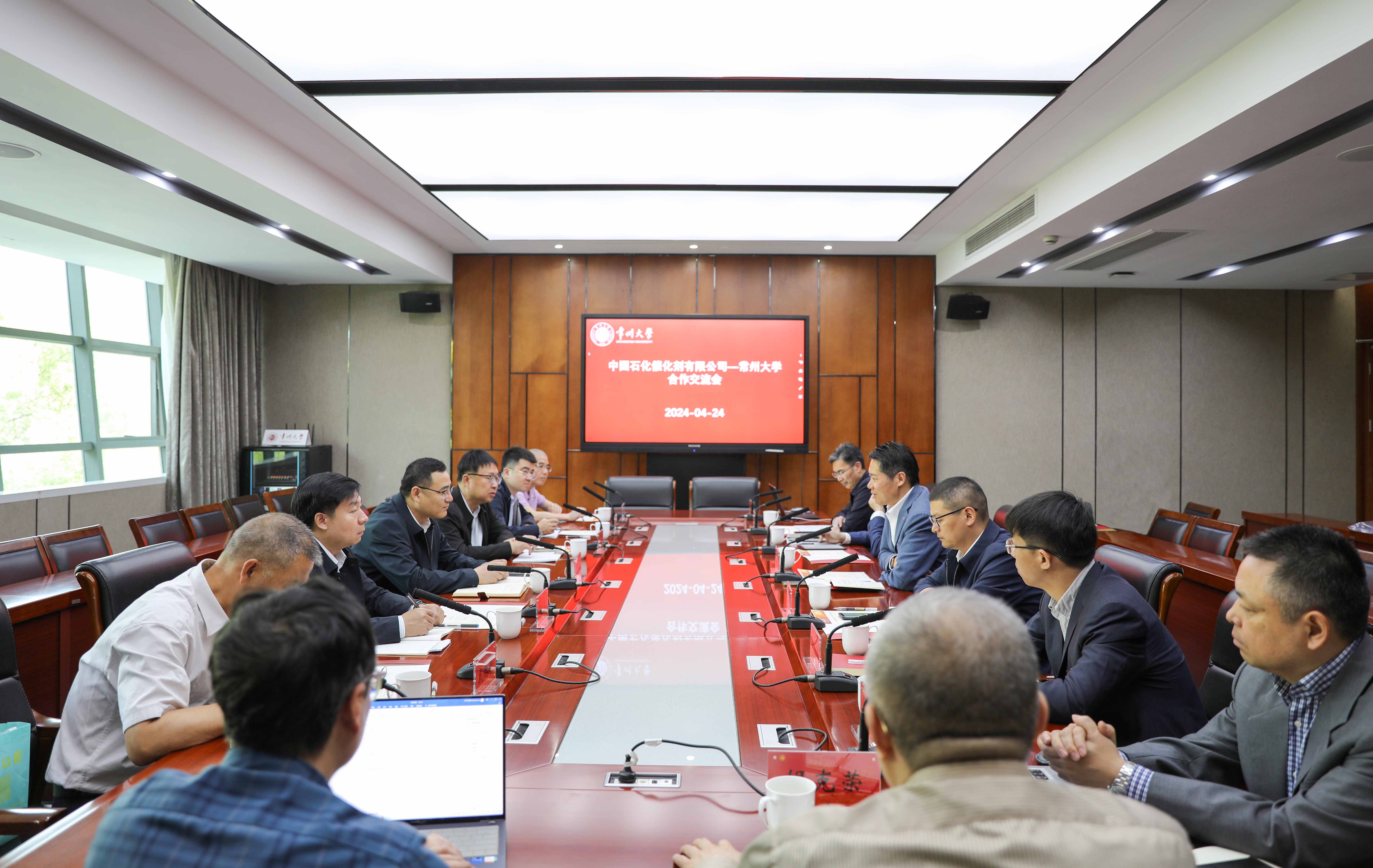 4月24日,中國石化催化劑有限公司(以下簡稱“催化劑公司”)黨委副書記、總經(jīng)理馬鳴一行來校開展產(chǎn)學(xué)研合作交流,常州大學(xué)黨委副書記、校長陳海群出席會議,催化劑公司發(fā)展計劃部、貴金屬分公司、技術(shù)信息部、恒孚環(huán)保科技有限公司,我校聯(lián)合化學(xué)反應(yīng)工程研究所常州大學(xué)分所(以下簡稱“聯(lián)合所”)、創(chuàng)新聯(lián)合體辦公室、技術(shù)轉(zhuǎn)移中心相關(guān)負責人和專家參會,聯(lián)合所所長錢俊峰主持會議。