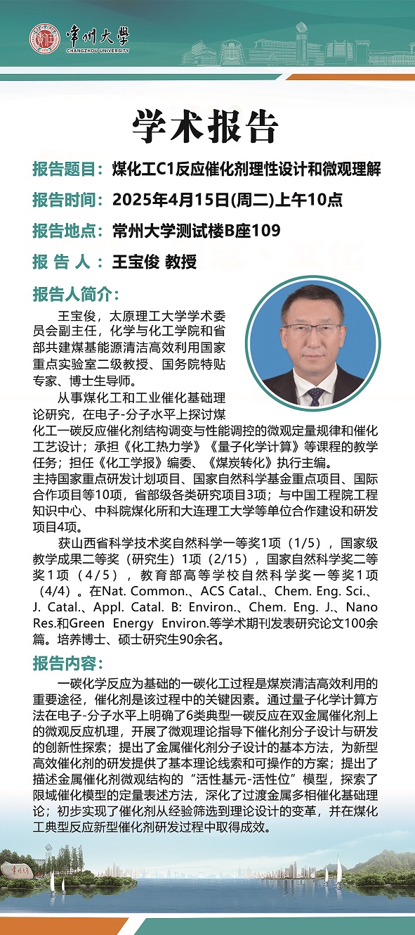 【學(xué)術(shù)報(bào)告】4月15日學(xué)術(shù)報(bào)告—王寶俊教授 太原理工大學(xué) |