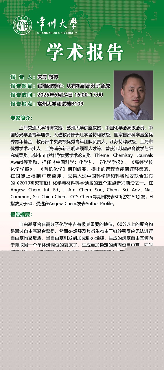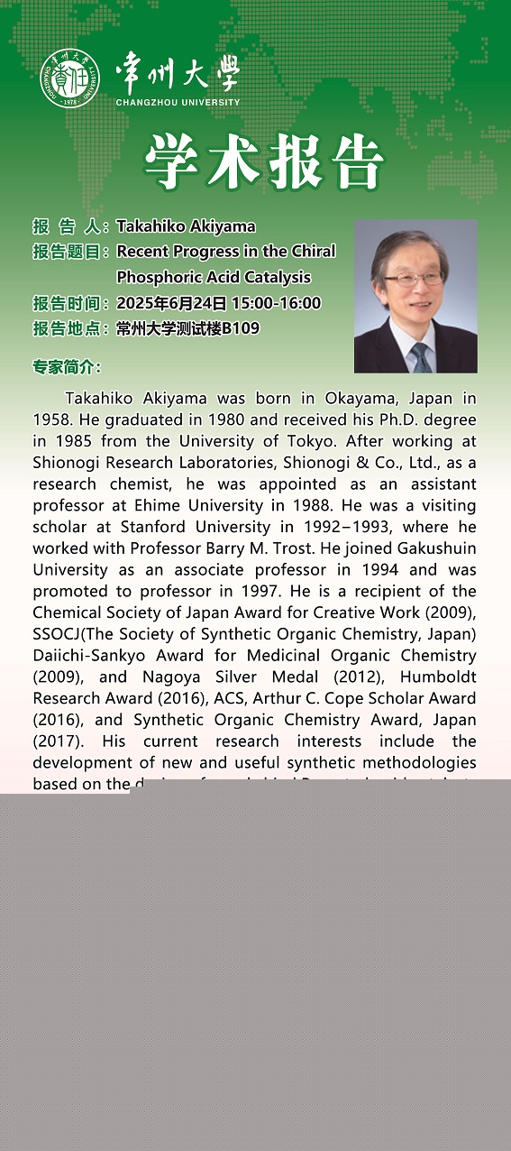 【學(xué)術(shù)報(bào)告】6月24日功能雜環(huán)研究院學(xué)術(shù)報(bào)告—Takahiko Akityama教授 學(xué)習(xí)院大學(xué) 朱晨教授 上海交通大學(xué) |