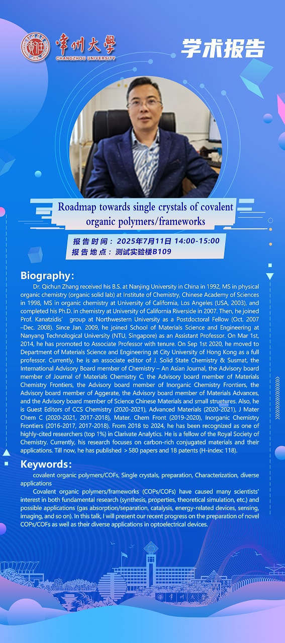 【學(xué)術(shù)報(bào)告】7月11日學(xué)術(shù)報(bào)告——張其春教授 香港城市大學(xué) 吳濤教授 暨南大學(xué) |