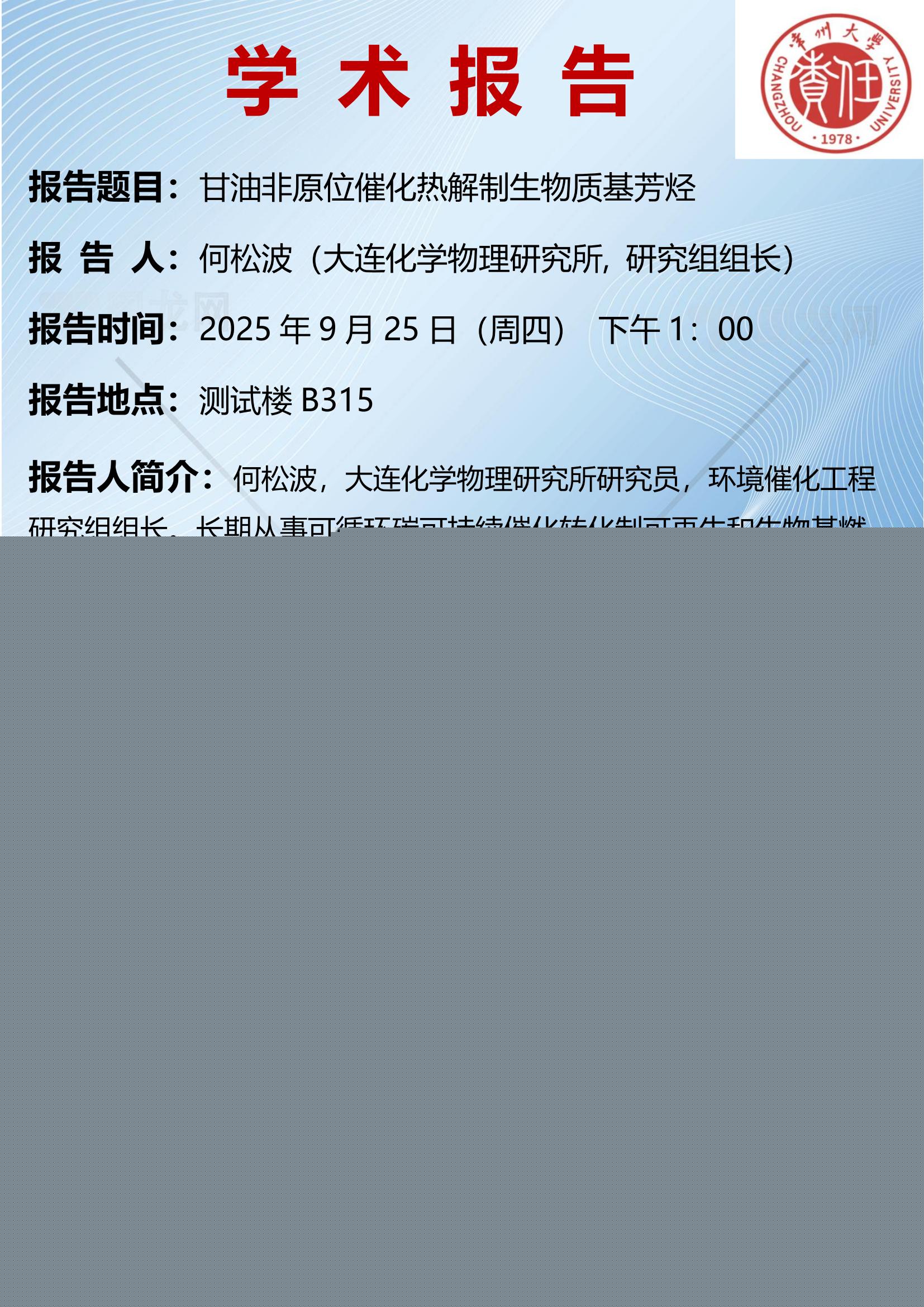 【學(xué)術(shù)報(bào)告】9月25日甘油非原位催化熱解制生物質(zhì)基芳烴 |