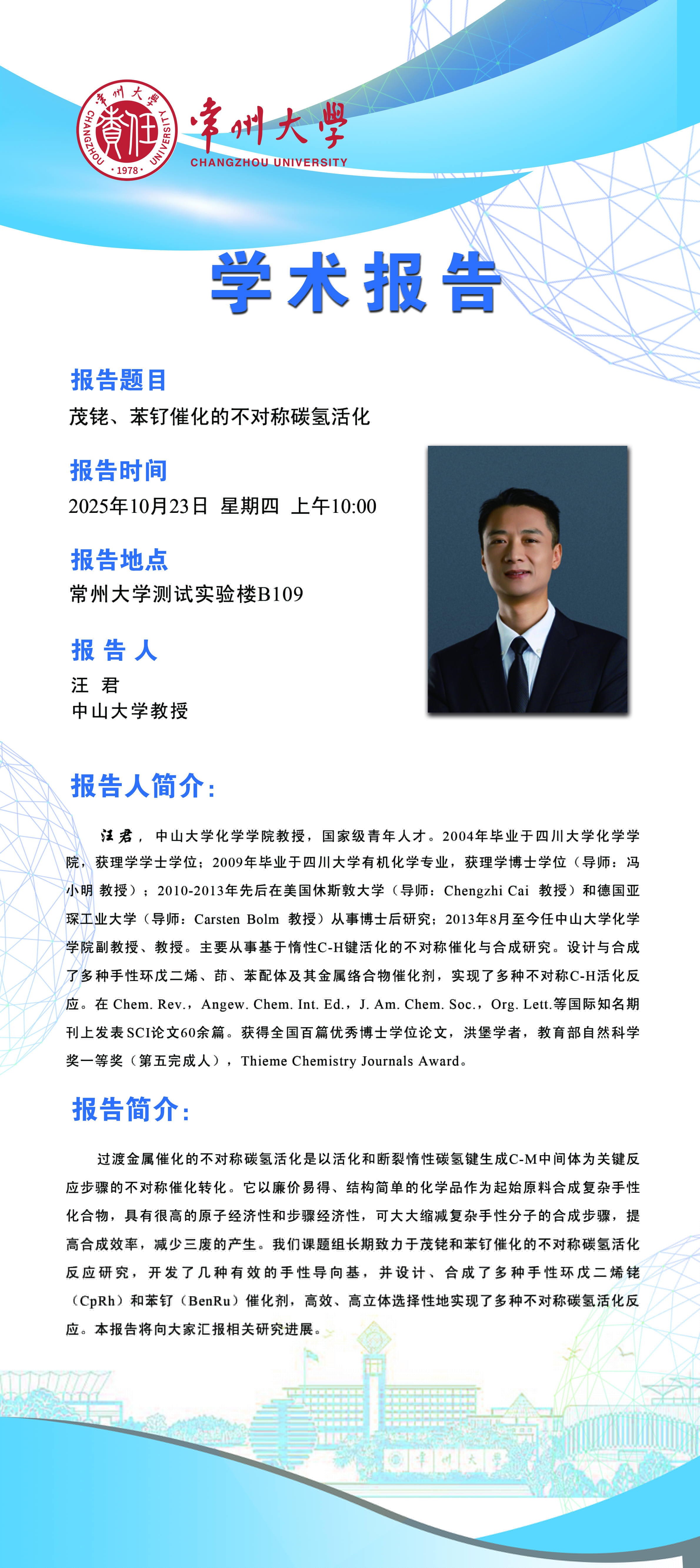 | 【學(xué)術(shù)報(bào)告】10月23日茂銠、苯釕催化的不對(duì)稱碳?xì)浠罨?/span> |
