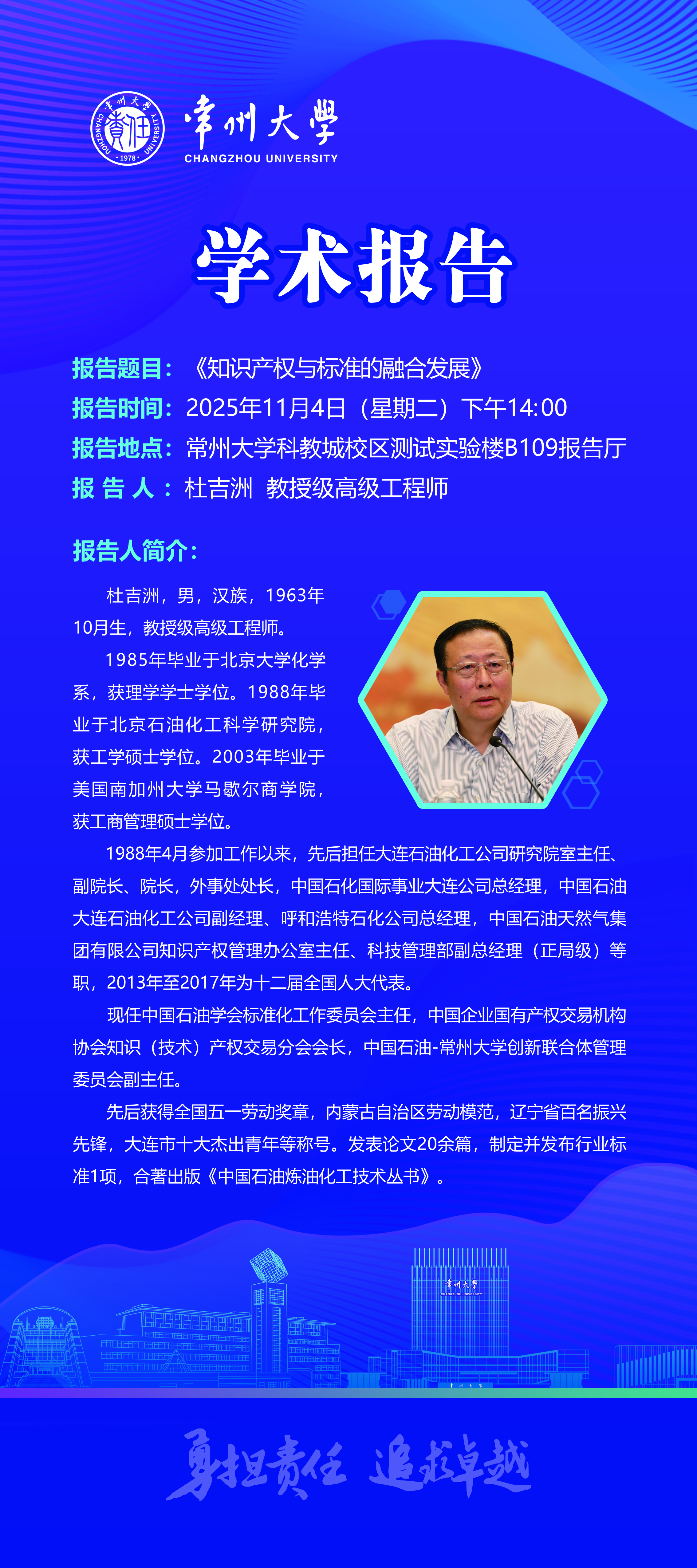 | 【學(xué)術(shù)報告】11月4日知識產(chǎn)權(quán)與標(biāo)準(zhǔn)的融合發(fā)展——杜吉洲 |
