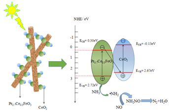 Rational construction of direct Z-scheme doped perovskite/palygorskitenanocatalyst for photo-SCR removal of NO: Insight into the effect of Ceincorporation Xiazhang Li *, Haiyang Shi , Xiangyu Yan , ShixiangZuo , Yuying Zhang , Qun Chen , Chao Yao *,Chaoying Ni*,Journal of Catalysis 369 (2019) 190–200 原文鏈接: https://www.sciencedirect.com/science/article/pii/S0021951718304391?dgcid=author 針對脫硝催化劑低溫活性差,抗硫抗水性弱,成本高的難題,本團隊近年來嘗試將光驅(qū)動引入傳統(tǒng)SCR催化脫硝體系,基于“固溶析出相”的理念,以天然凹凸棒石(坡縷石)為基體,相繼設(shè)計了Mn離子摻雜type-I型(ChemicalEngineeringJournal, 2017, 320, 211-221),Ni離子摻雜type-II型photo-SCR催化劑(Applied Catalysis B: Environmental,2018,231, 92–100),巧妙解決了光生載流子易復(fù)合的難題,并構(gòu)建了石墨烯介質(zhì)的間接Z-Scheme(Journal of Catalysis,2018,357,59–68),氮摻雜碳量子點修飾的直接Z-Scheme催化劑(ACS Sustainable Chem. Eng, 2018, 6,6, 10616?10627),解決了光生電荷遷移后氧化還原活性變差的難題。本工作在此基礎(chǔ)上,在鈣鈦礦中引入Ce離子,通過費米能級的調(diào)控引導(dǎo)在凹凸棒石表面形成摻雜PrFeO3/CeO2直接Z-Scheme“固溶析出相”異質(zhì)結(jié),無須傳導(dǎo)介質(zhì),有效提升了光能吸收,保持了高氧化還原活性的同時表現(xiàn)出良好的低溫抗硫抗水性。該工作得到了國家自然科學(xué)基金(51674043)和江蘇省國際科技合作項目(BZ2015040)的資助,同時得到了美國特拉華大學(xué)電鏡中心主任倪超英教授的大力支持。 |