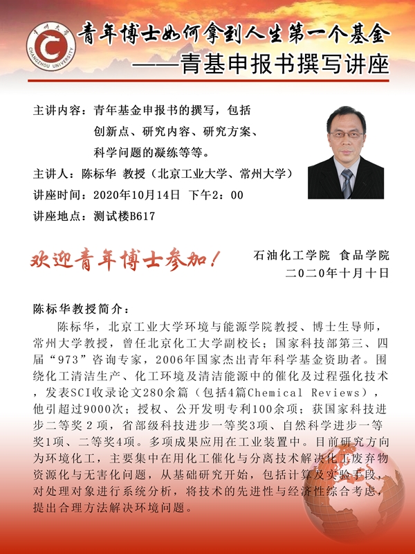 【講座】10月14日學(xué)術(shù)講座——陳標(biāo)華教授