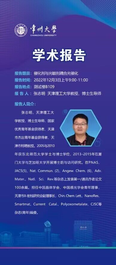 【學(xué)術(shù)報告】12月3日學(xué)術(shù)報告——張志明教授——天津理工大學(xué)